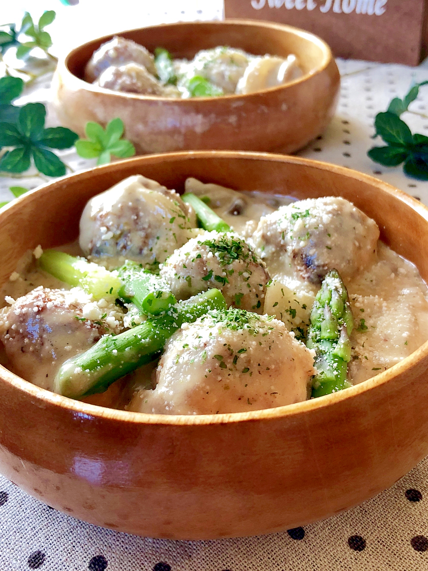 ミートボールとアスパラのクリームソース煮込み レシピ 作り方 By みさきらりんず 楽天レシピ